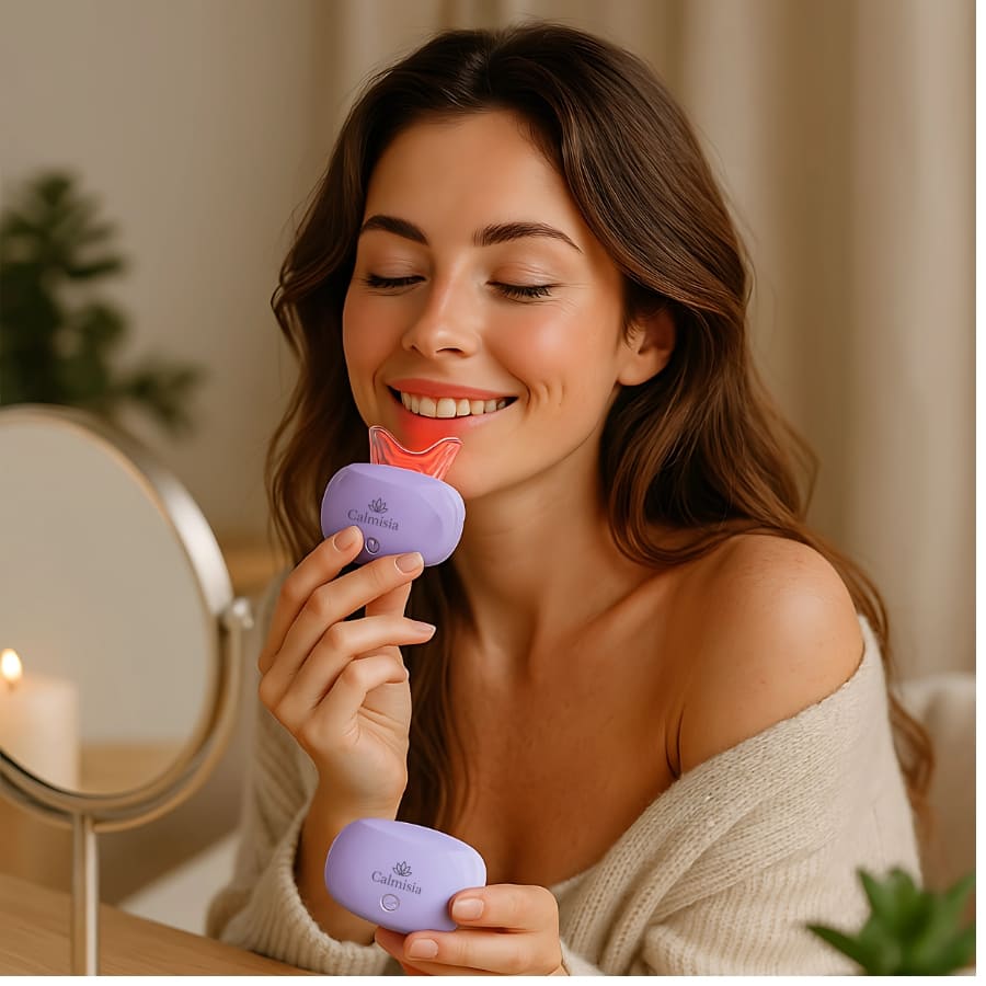 CalmiVoluLip utilise la technologie LED et des vibrations douces pour offrir des lèvres plus pulpeuses, hydratées et éclatantes, sans injection ni produits chimiques.